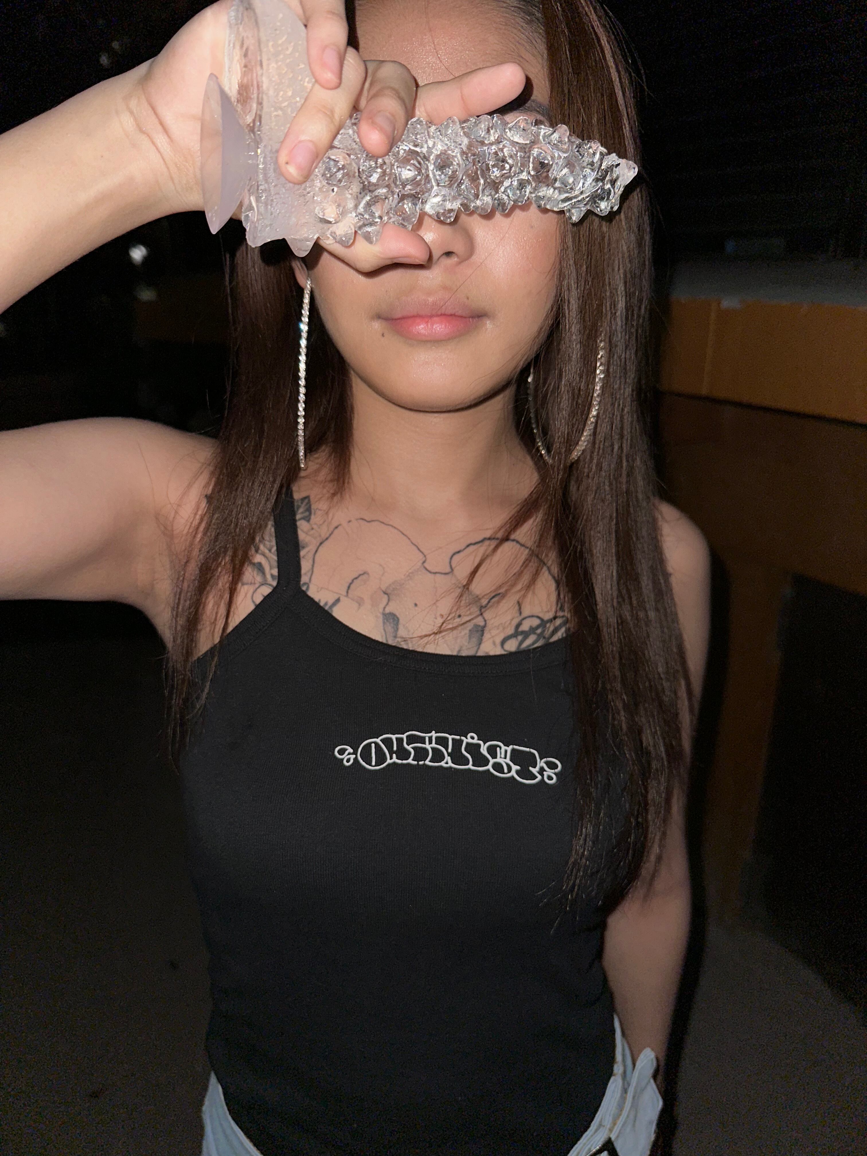 onanistのthrowupをシルクスクリーンでプリントしたキャミソールになっています。